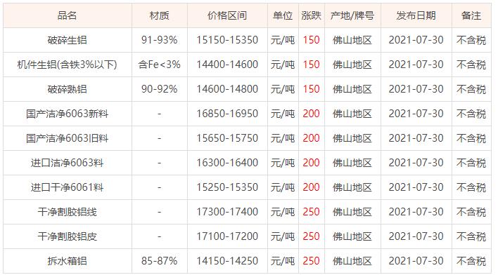摘要:根据最新消息,佛山废铝价格行情呈现波动趋势。经过分析,废铝价格受到市场供需关系、回收量、冶炼成本等多种因素影响。目前,佛山废铝价格仍处于较为合理的水平,但市场变化较快,建议相关企业和个人密切关注市场动态,做好相关决策。