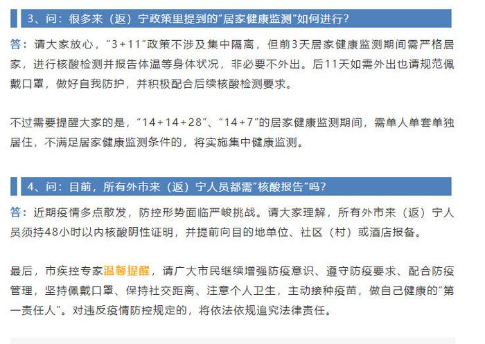 1. 强化个人防护意识:返宁人员需保持良好的卫生习惯,如佩戴口罩、勤洗手、保持社交距离等。