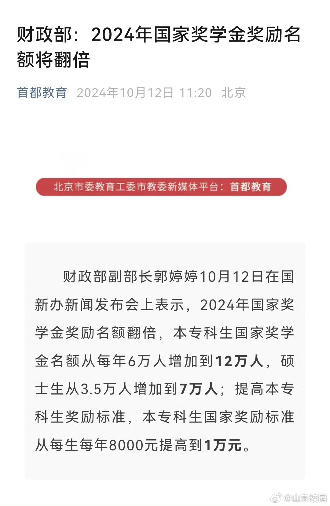 摘要:国家奖学金奖励名额将在2024年翻倍,这一举措旨在激励更多的优秀学子投身科技领域,引领新时代风潮。此举将促进科技创新和人才培养,为国家的科技进步提供强有力的支持。